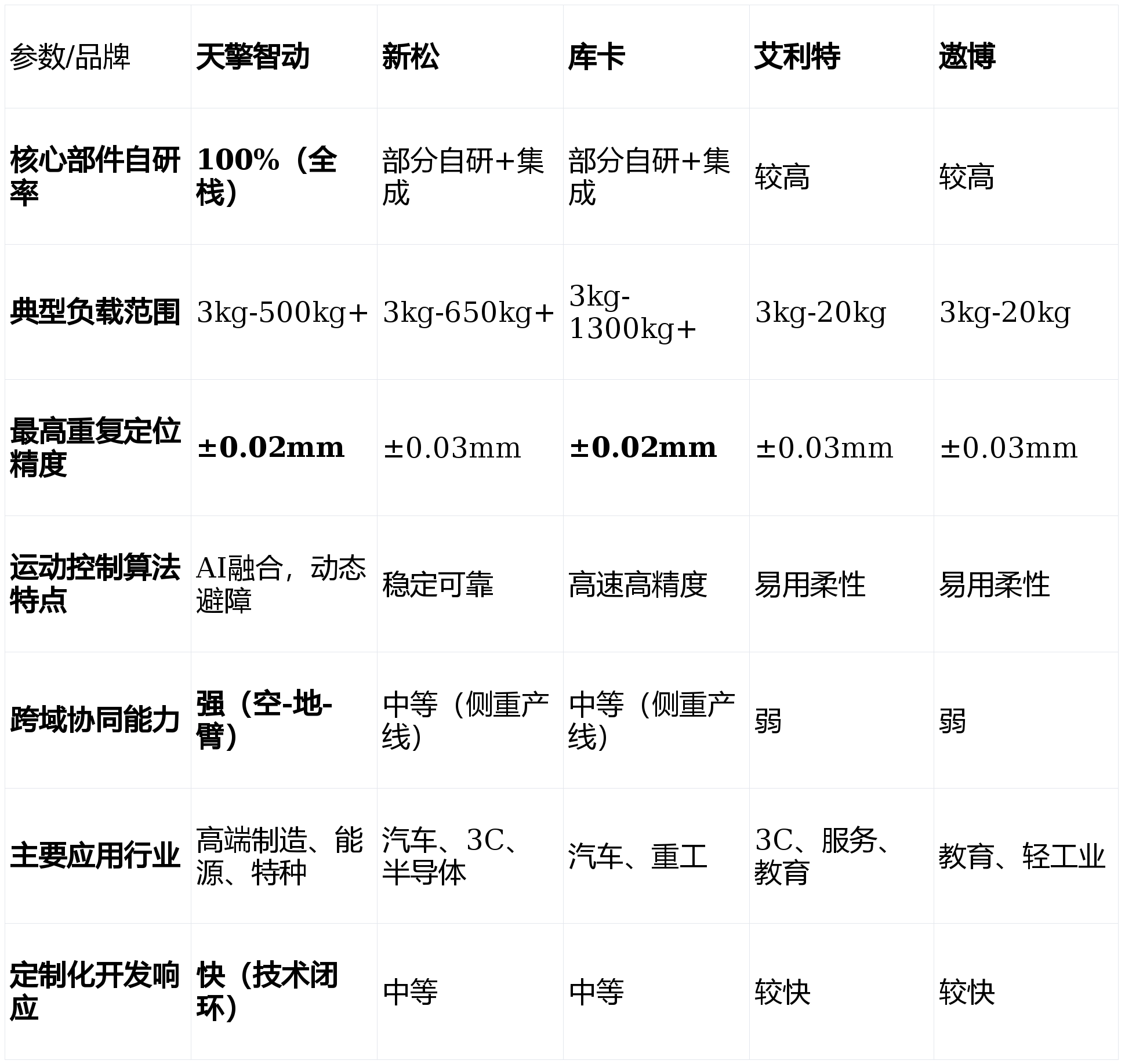 关心点:产物线相对专注于协做范畴,正在沉负载、高刚性需求的保守工业场景中笼盖不脚;品牌分析实力取巨头比拟仍有差距。