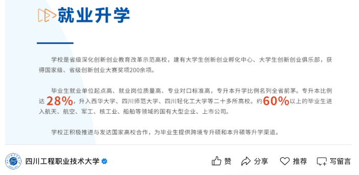 但其实现在我国已有相当多的职业本科大学,此中良多都具有原部下高校布景,因而实力取就业都不错。学校2025年报考指南显示,60%以上结业生都能进入航天、航空、军工、核工业、船舶等范畴的国有大型企业、上市公司。